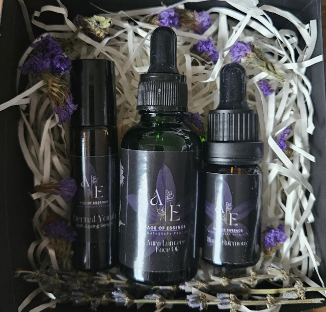 Our Anti-Ageing gift box consists of Aura Lumiere face oil, Hand Harmony hand oil and our Eternal Youth under eye serum.